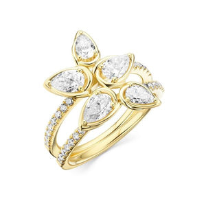 Elevate your elegance with this stunning 18K yellow gold ring featuring a pear-shaped diamond centerpiece surrounded by a delicate floral design. The two-row diamond band adds extra brilliance, totaling 1.67 carats of dazzling sparkle. Perfect for special occasions or everyday luxury, this ring combines timeless beauty with exceptional craftsmanship to make a lasting impression.