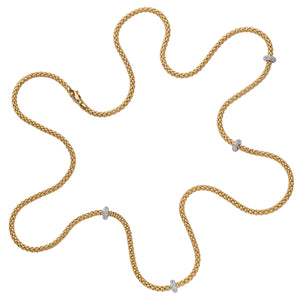 Crafted in 18K yellow gold, this Fope necklace showcases .72 CTW of diamonds on white gold rondels, elegantly designed at an 80cm length to enhance any outfit with timeless sophistication.