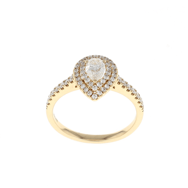 Pear Double Halo Complete Engagement Ring 14K Yellow Gold (0.3...