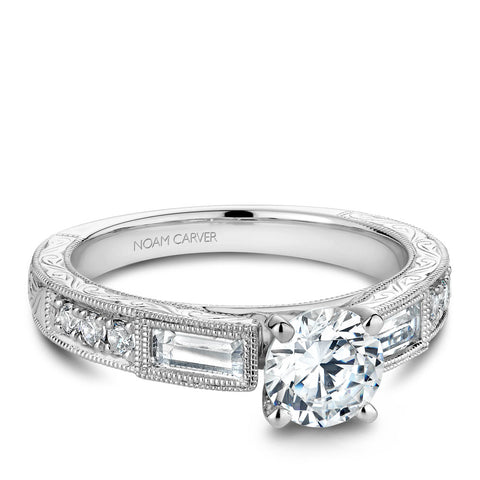 Noam Carver White Gold Milgrain Baguettes and Rounds Engagemen...