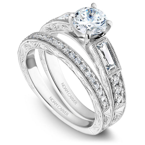Noam Carver White Gold Milgrain and Carved Shank Diamond Engag...