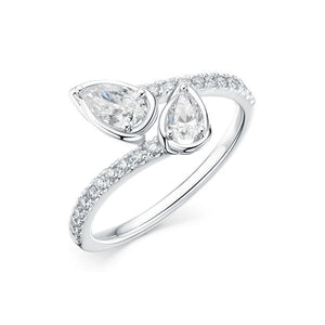 Elevate your elegance with this stunning Two Pear Shaped Diamond Ring, featuring a total of .74 carats of dazzling diamonds. Set in luxurious 18k white gold, the ring’s sparkling pear-shaped stones are complemented by a diamond-studded band, creating a timeless and sophisticated look. Perfect for special occasions or everyday glamour, this ring promises to captivate and shine with every gesture.