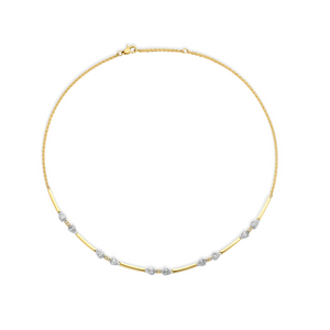 Elevate your elegance with this exquisite two-toned 18K necklace, featuring a stunning 1.60 CTW of pear-shaped diamonds. The blend of warm and cool gold tones enhances versatility, making it perfect for both everyday wear and special occasions. Its refined design highlights the brilliance of each diamond, ensuring you shine with timeless sophistication. This necklace is a captivating statement piece that effortlessly complements any outfit.